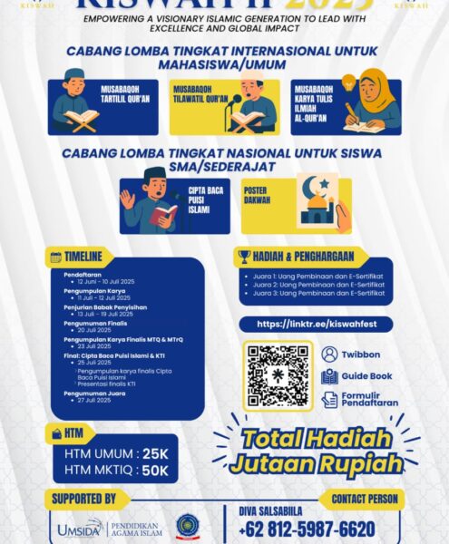 Pai.umsida.ac.id – Himpunan Mahasiswa Program Studi Pendidikan Agama Islam (PAI) Universitas Muhammadiyah Sidoarjo kembali menyelenggarakan ajang kompetisi Islami bertaraf nasional dan internasional bertajuk KISWAH II 2025. Mengusung tema Empowering a...