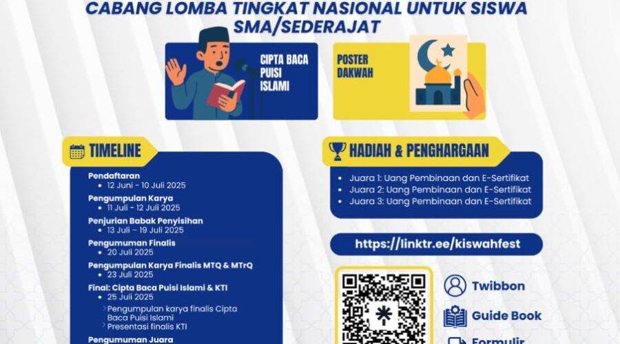 Pai.umsida.ac.id – Himpunan Mahasiswa Program Studi Pendidikan Agama Islam (PAI) Universitas Muhammadiyah Sidoarjo kembali menyelenggarakan ajang kompetisi Islami bertaraf nasional dan internasional bertajuk KISWAH II 2025. Mengusung tema Empowering a Visionary Islamic Generation to Lead with Excellence and Global Impact, kegiatan ini menjadi wadah bagi generasi muda untuk menunjukkan potensi mereka dalam bidang keislaman dengan cakupan yang lebih luas dan skala yang lebih besar dibanding penyelenggaraan sebelumnya. KISWAH II 2025...Read More